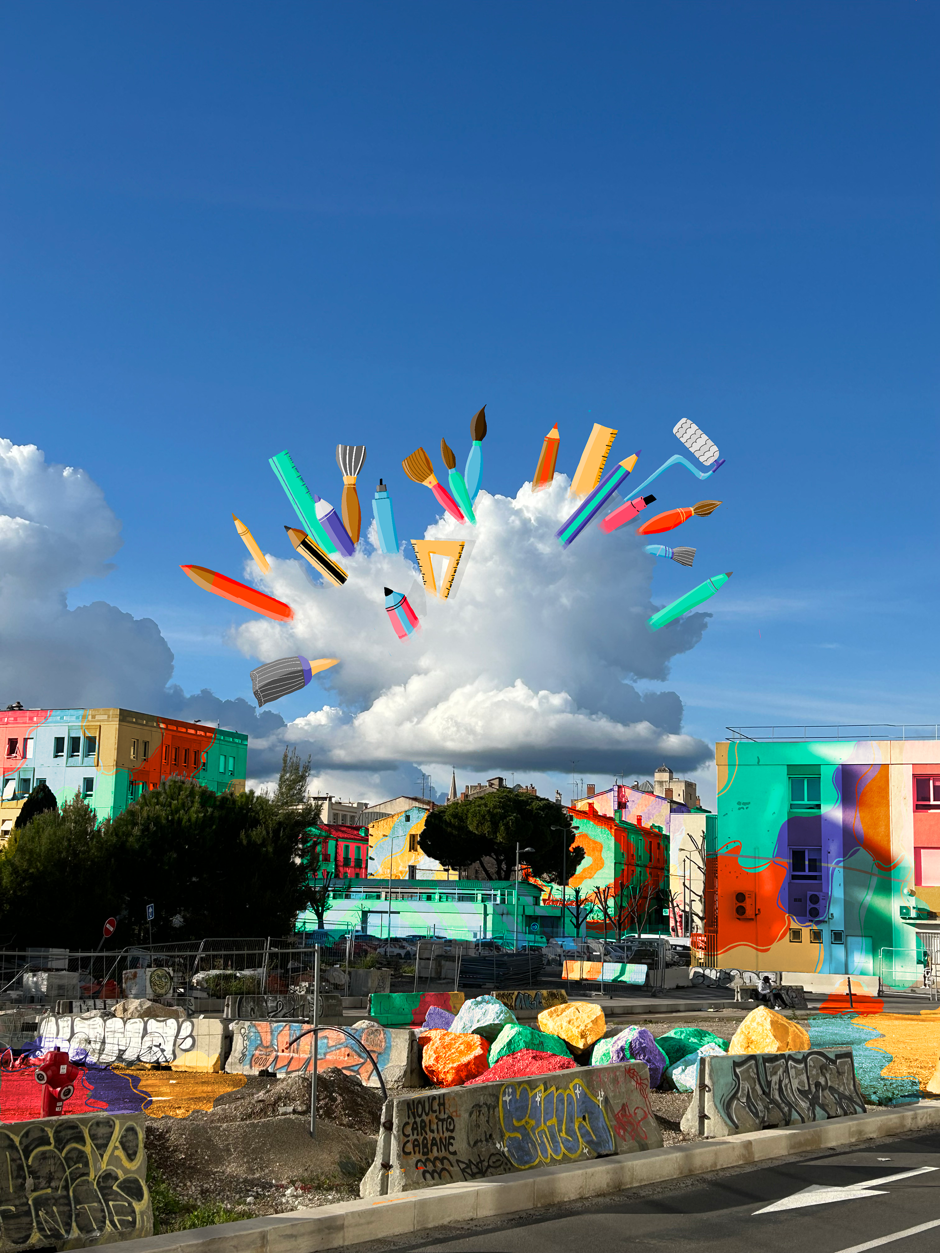 collection of drawings over photographs of the city i live in.